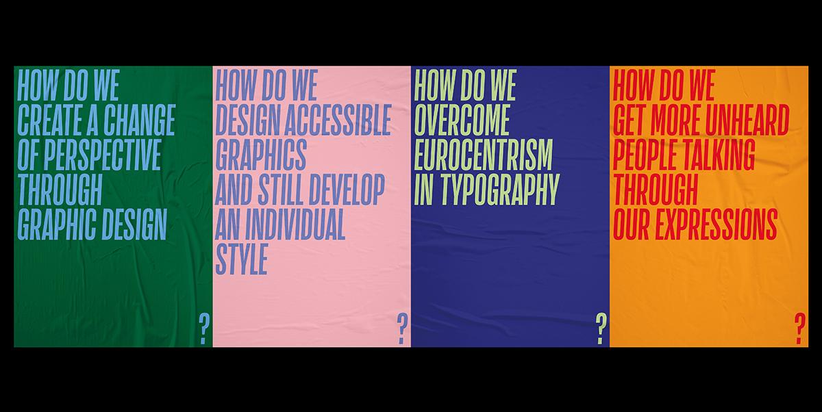 Welcher Perspektivenwandel müsste im Designbereich stattfinden und welche Fragen müssen wir stellen, um eine Veränderung der Sichtweisen zu bewirken? Wie können veraltete (patriarchale) Denkmuster und diskriminierende Strukturen in der visuellen Kommunikation aufgelöst und ein Bewusstsein für andere Perspektiven geschaffen werden? Amyra Radwan und Sina Gösele initiierten das Projekt „Burning Questions“ und luden Designer*innen ein, Plakate zu gestalten, die zur Reflexion der eigenen Position und zu einer kritischen Haltung anregen. Káschem Büro gestaltete anlässlich dieses Vorhabens eine auf Text und Farben basierende Plakatreihe, um wesentliche Fragen zu thematisieren, mit denen sie sich auseinander setzen.(Design: Káschem Büro)