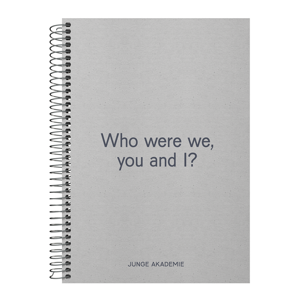 „Who were we, you and I?“ Konzept, Art Direktion und Grafikdesign für Junge Akademie in Berlin in Kollaboration mit Paul Steinmann. 21 Publikationen in einer: Die 21 Beiträge der Stipendiat*innen der Jungen Akademie 2020 werden von einer soliden Metallspirale zusammengehalten. Jedes Kapitel hat sein eigenes Cover und Impressum. Durch die Spiralbindung lassen sich die Kapitel um 360 Grad drehen. Jeder Umschlag markiert somit potenziell den Anfang des Buches.