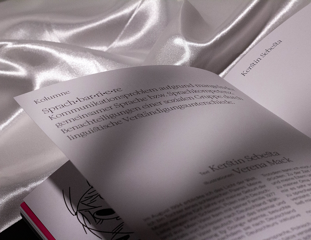 In der ersten Ausgabe des Olympé Magazins befinden sich 184 Seiten mit sehr interessanten, lehrreichen Texten, beeindruckenden Fotografien und beeindruckenden Interviews. Alles über unsere Sprache, wie Schriftdesigner neue geschlechtsneutrale Glyphen entwickeln oder wie wir unsere Sprache integrativer gestalten können. Schriften: „Romie“ von Margot Lévêque und „Referenz Grotesk“ von Stefanie Schwarz.