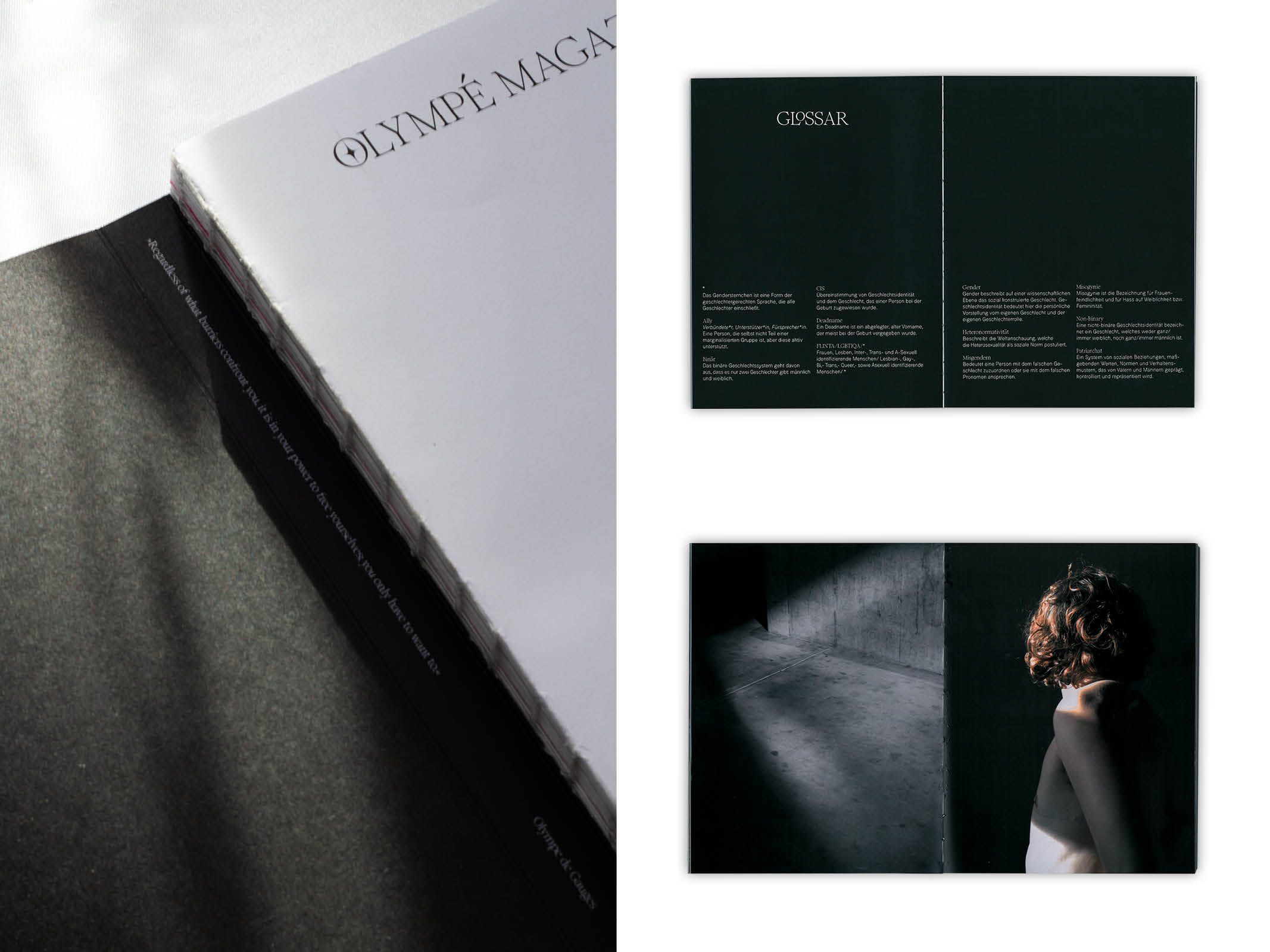 Das Olympé Magazin ist eine Publikation, welche den Queerfeminismus thematisiert. Der Fokus von Olympé liegt auf der aktiv queerfeministischen Bewegung unserer Gesellschaft sowie auf dem aktivistischen Queerfeminismus in der Designkultur und die Position von FLINTA* in kreativen Berufen.